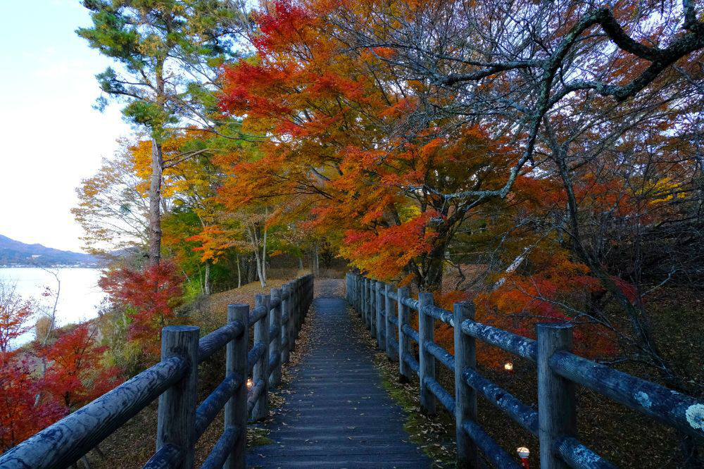 Mt. Fuji from Lake Yamanaka can be seen by walking about 100 meters along the lakeside. I hope the weather is good when you stay here. The best time to see Mt. Fuji is from morning to noon, but after that, clouds tend to appear.